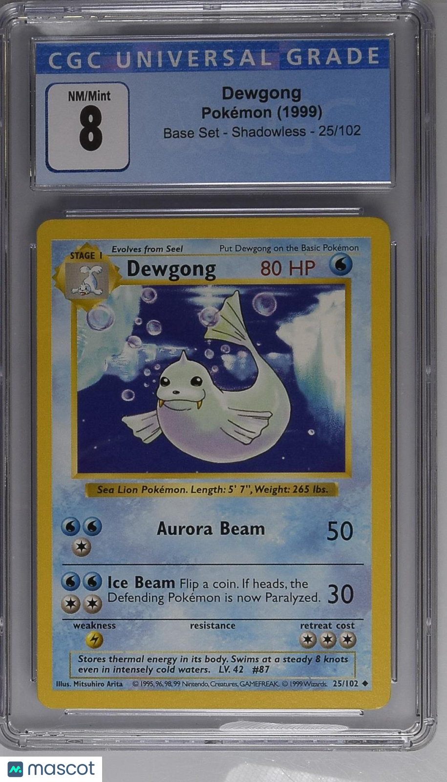 You are purchasing a 1999 Pokemon Dewgong #25/102 English CGC 8. You will receive the exact item in the photographs. Thank you for looking. Listed With Mascot.