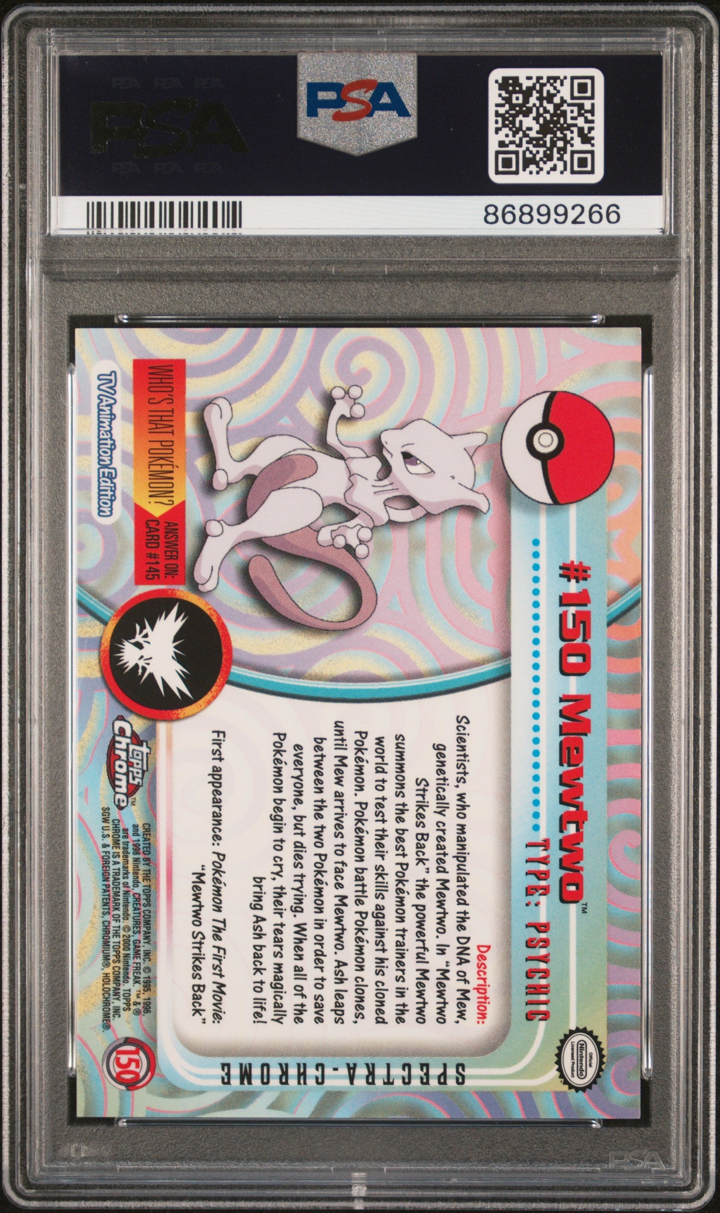 2000 Topps Chrome Pokemon T.V. Mewtwo #150 Pokemon T.V.-Spectra PSA 9