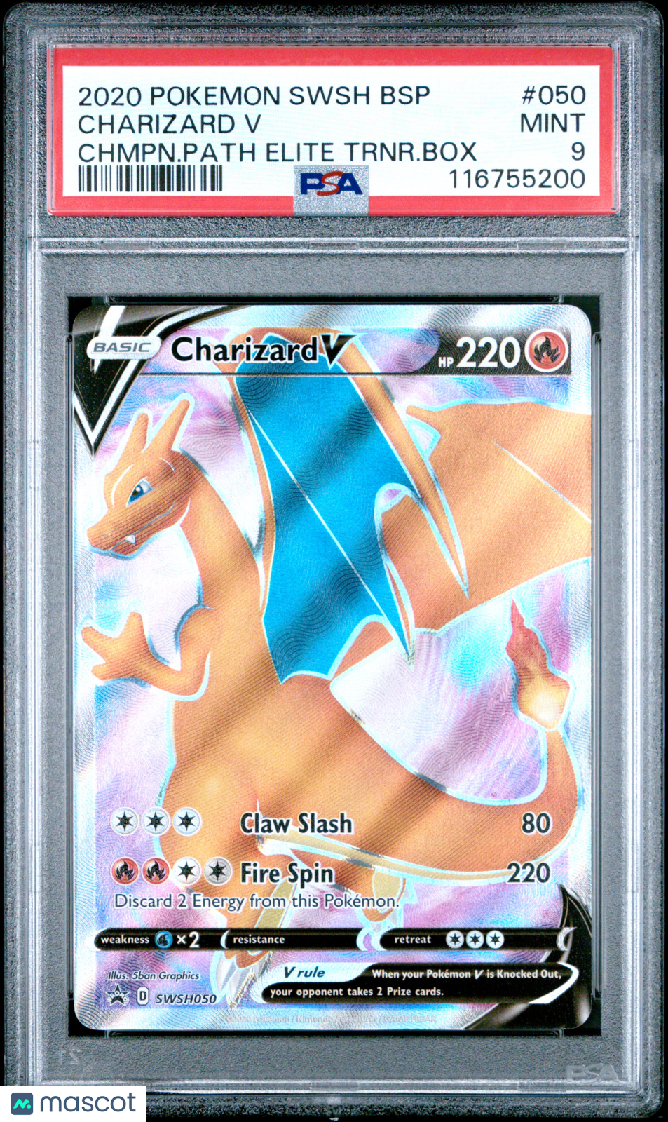 2020 Pokemon Swsh Black Star Promo Charizard V #050 Chmpn.Path Elite Trnr.Box PSA 9