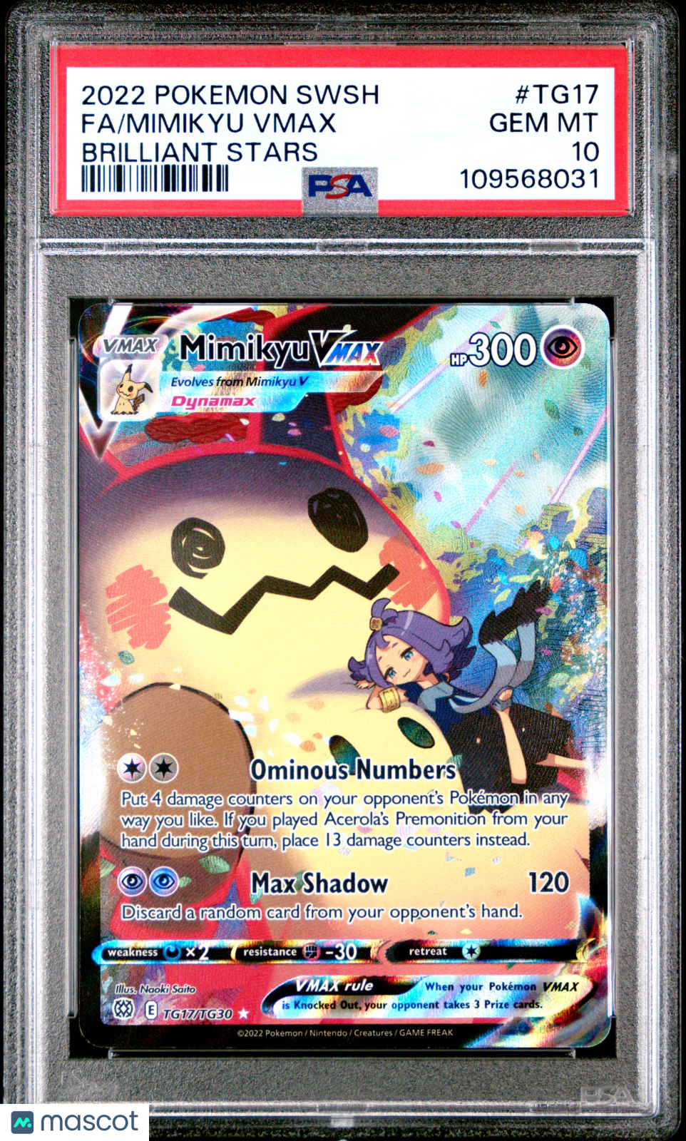 2022 Pokemon Sword & Shield Brilliant Stars Mimikyu VMAX #TG17 Fa Brilliant Stars PSA 10