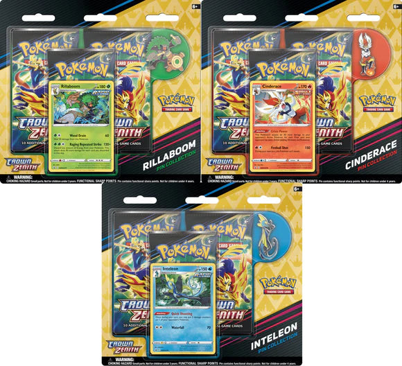 Pokemon TCG: Crown Zenith Pin Colection w/ Cinderance, Inteleon or Rillaboom Promo & Pin