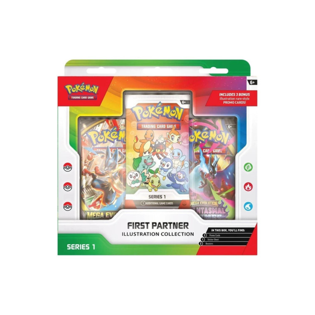 The Pokémon TCG: First Partner Illustration Collection—Series 1 includes:
