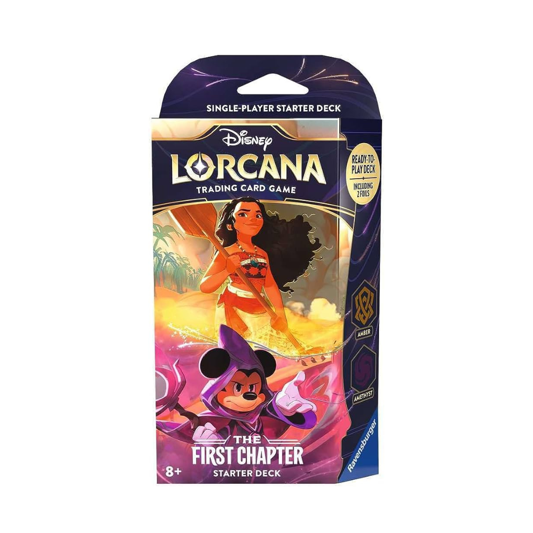 Ready-to-play starter decks contain a preconstructed deck with a specific card list. If you’re new to trading card games, or if you want to experience the game with a deck designed and tested by Team Lorcana, this is a good place to start.