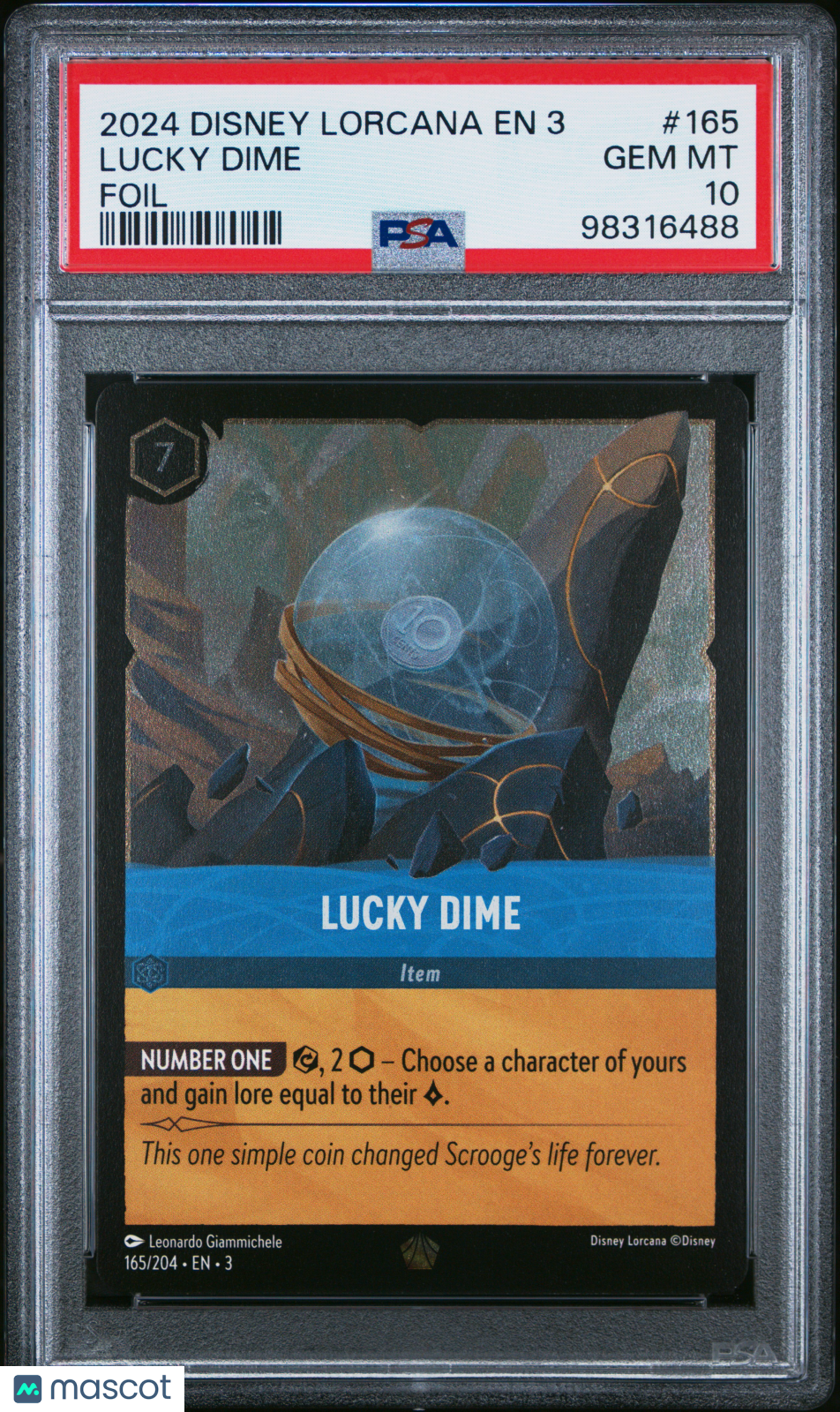 2024 Disney Lorcana EN 3-Into The Inklands Lucky Dime #165 Foil PSA 10