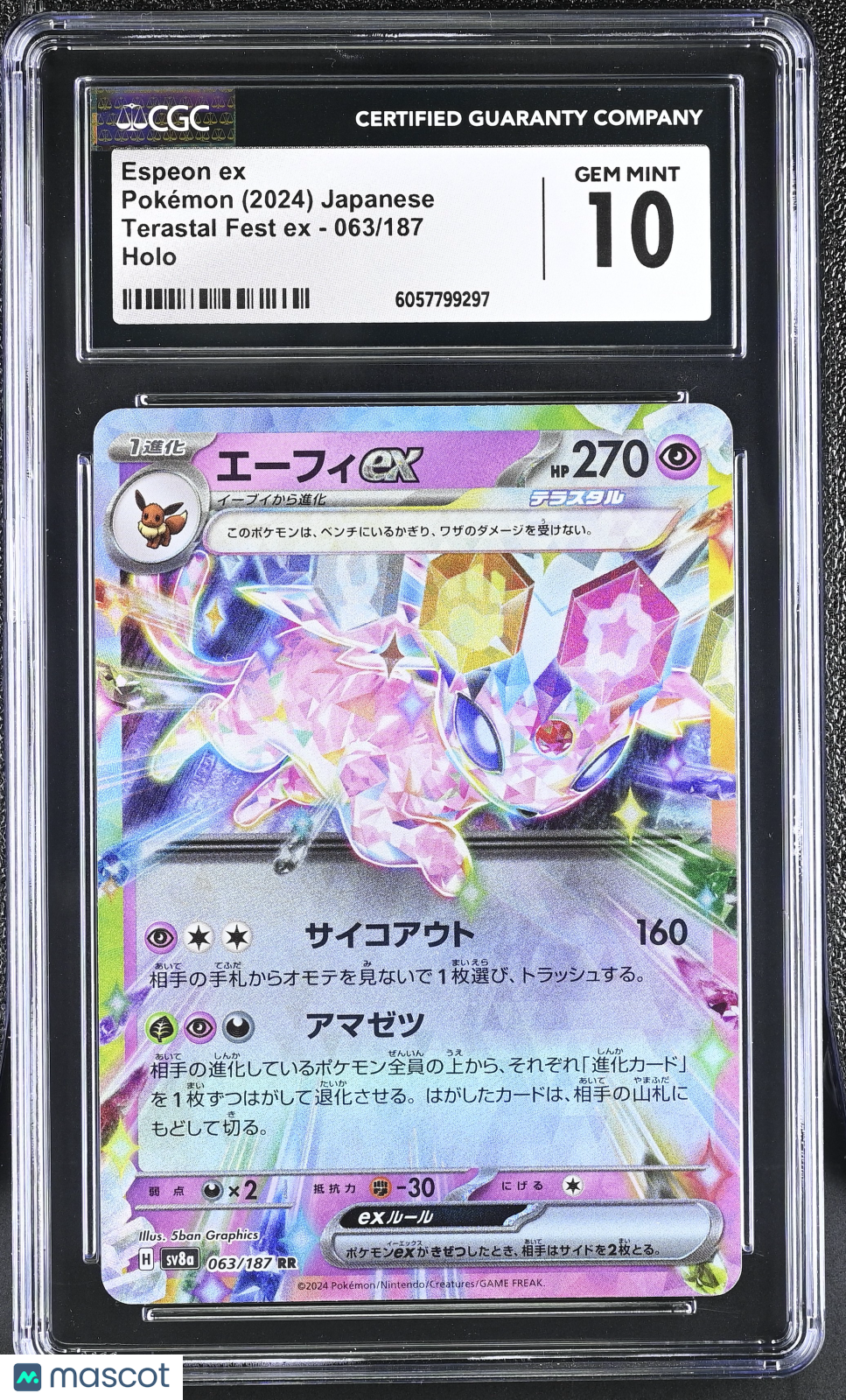 2024 Pokemon Terastal Fest EX Espeon ex Holo Japanese 063/187 CGC 10 #063/187
