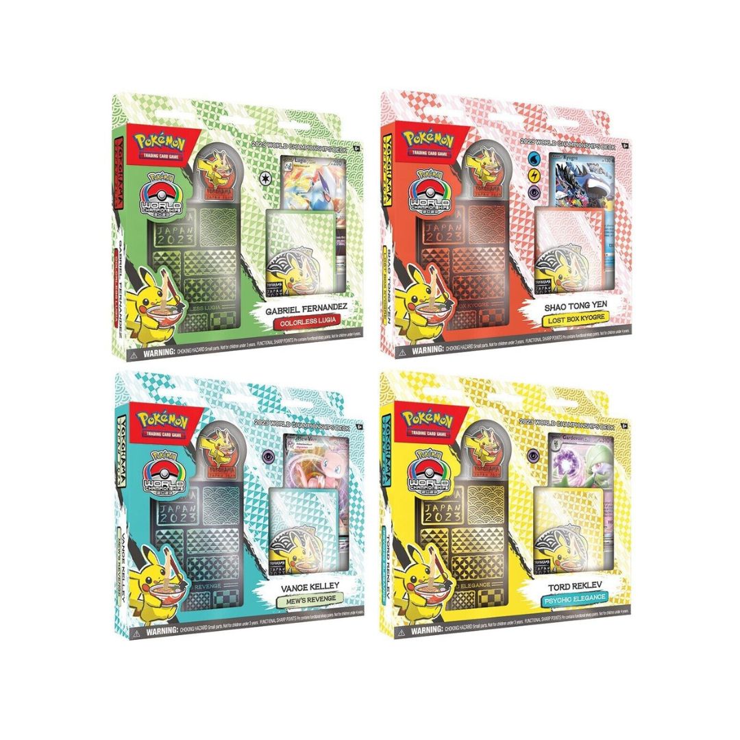 Grab a World Championships deck and play like a champion! Choose one of four powerful decks, each a card-for-card replica of an actual title-contender’s deck from the 2023 Pokémon Trading Card Game World Championships!