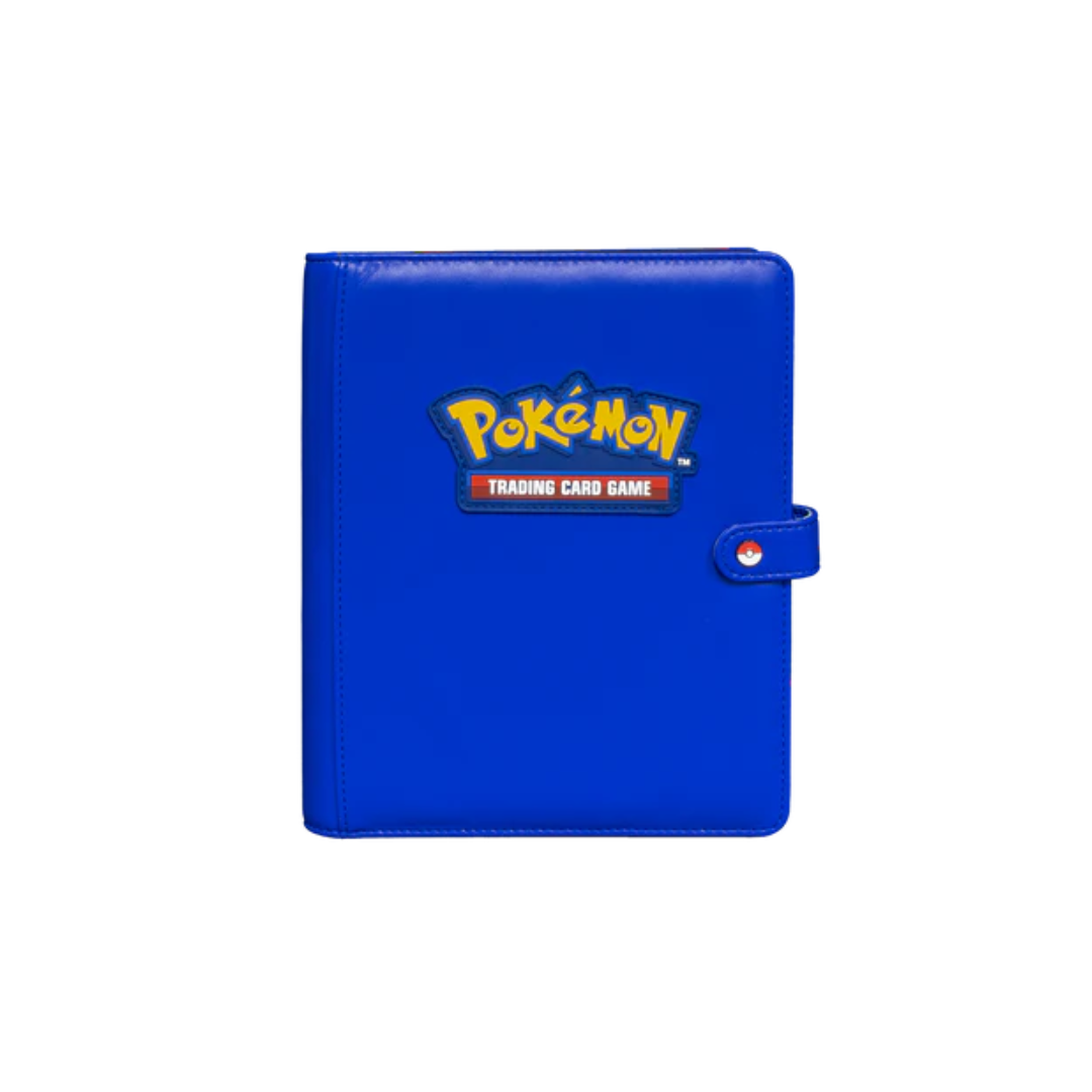 The Premium Snap Binder for Pokémon is the ideal accessory for trading card collectors of every age! Each binder features a blue padded leatherette cover with a rubber Pokémon logo emblem, and can be securely closed with the enamel Pokéball snap on the front. Inside this durable binder, you’ll find twenty 4-pocket pages sized for standard trading cards in side-loading pockets, allowing you to store up to 160 cards in Deck Protector® sleeves. Pages feature a low-friction black backing, creating a separation between the front and back pockets as well as providing cards a classic framed look. Every Premium Snap Binder is made with acid-free, non-PVC materials to ensure your cards are well protected and preserved.